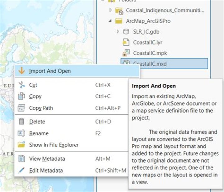To bring your ArcMap, ArcGlobe, and Scenes into ArcGIS Pro, just click Import Map on the Insert tab. You can also drag and drop the map documents from the ArcMap Catalog window to the ArcGIS Pro Catalog pane or Catalog view. When you import a map document (. mxd), each data frame is imported as a separate map.