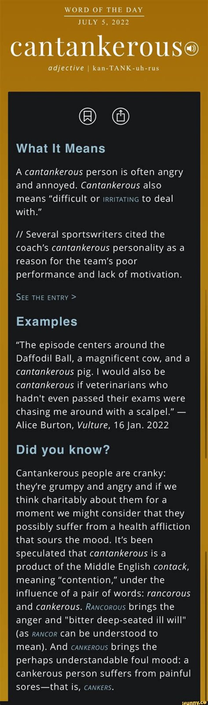What does cantankerous mean?
