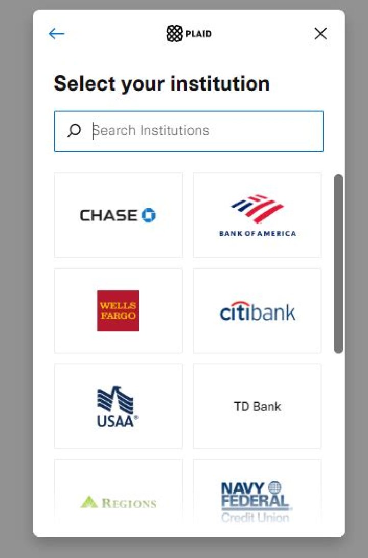 Plaid supports most major bank institutions like Chase, Wells Fargo, Bank of America, as well as smaller banks and credit unions.