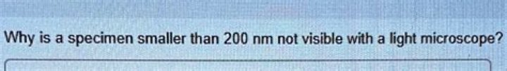 Why is a specimen smaller than 200 nm not visible with a light microscope? Anything smaller than 200 nm cannot interact with visible light. It is too easy to lose on the stage.